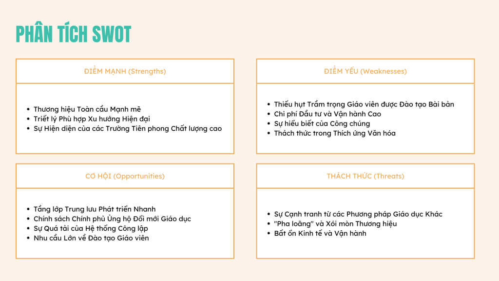 2.1. Phân tích SWOT cho Giáo dục Montessori tại Miền Nam Việt Nam