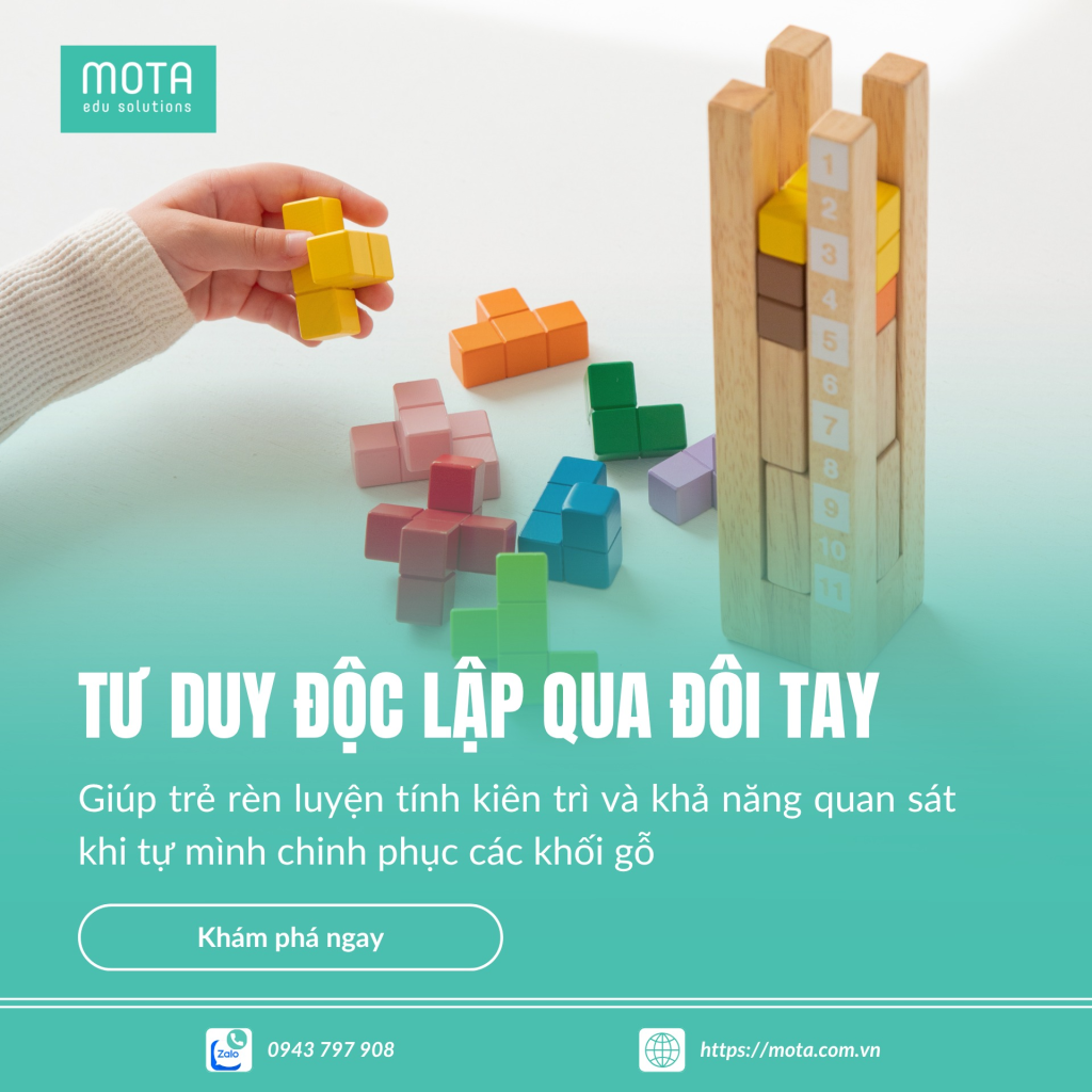 Nuôi dưỡng tư duy bắt đầu từ điều nhỏ. Bộ xếp hình khối tháp gỗ rất tuyệt. Ba mẹ có biết sự thật này không? Chỉ cần mười lăm phút vui chơi mỗi ngày. Trẻ đã có thể học được rất nhiều. Trẻ học thông qua việc chơi đùa vui vẻ. Bộ đồ chơi này mang lại nhiều giá trị. Sự phát triển của trẻ luôn được ưu tiên.