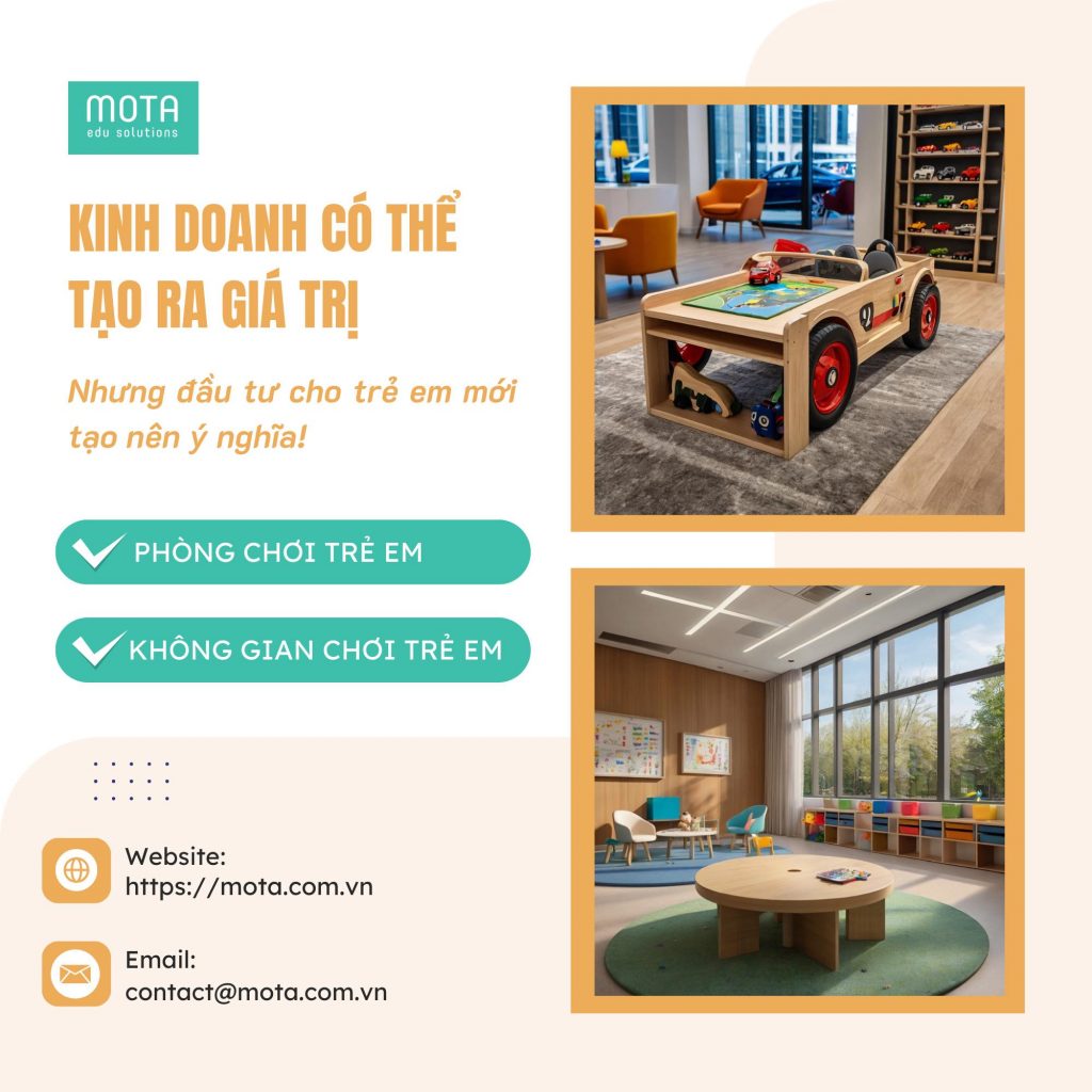 Với hệ thống nội thất và giáo cụ mầm non chuyên nghiệp, MOTA Edu Solutions mang đến giải pháp hoàn hảo trong việc setup không gian hoặc phòng chơi trẻ em, nâng tầm trải nghiệm khách hàng một cách tinh tế và hiệu quả, giúp doanh nghiệp tạo dựng lợi thế cạnh tranh dài lâu.