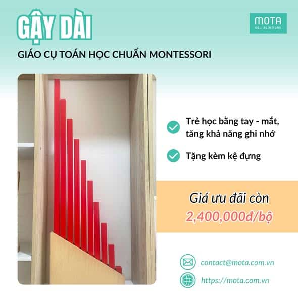 Gậy dài (gậy đỏ): Giúp trẻ cảm nhận và so sánh độ dài thông qua thao tác trực tiếp