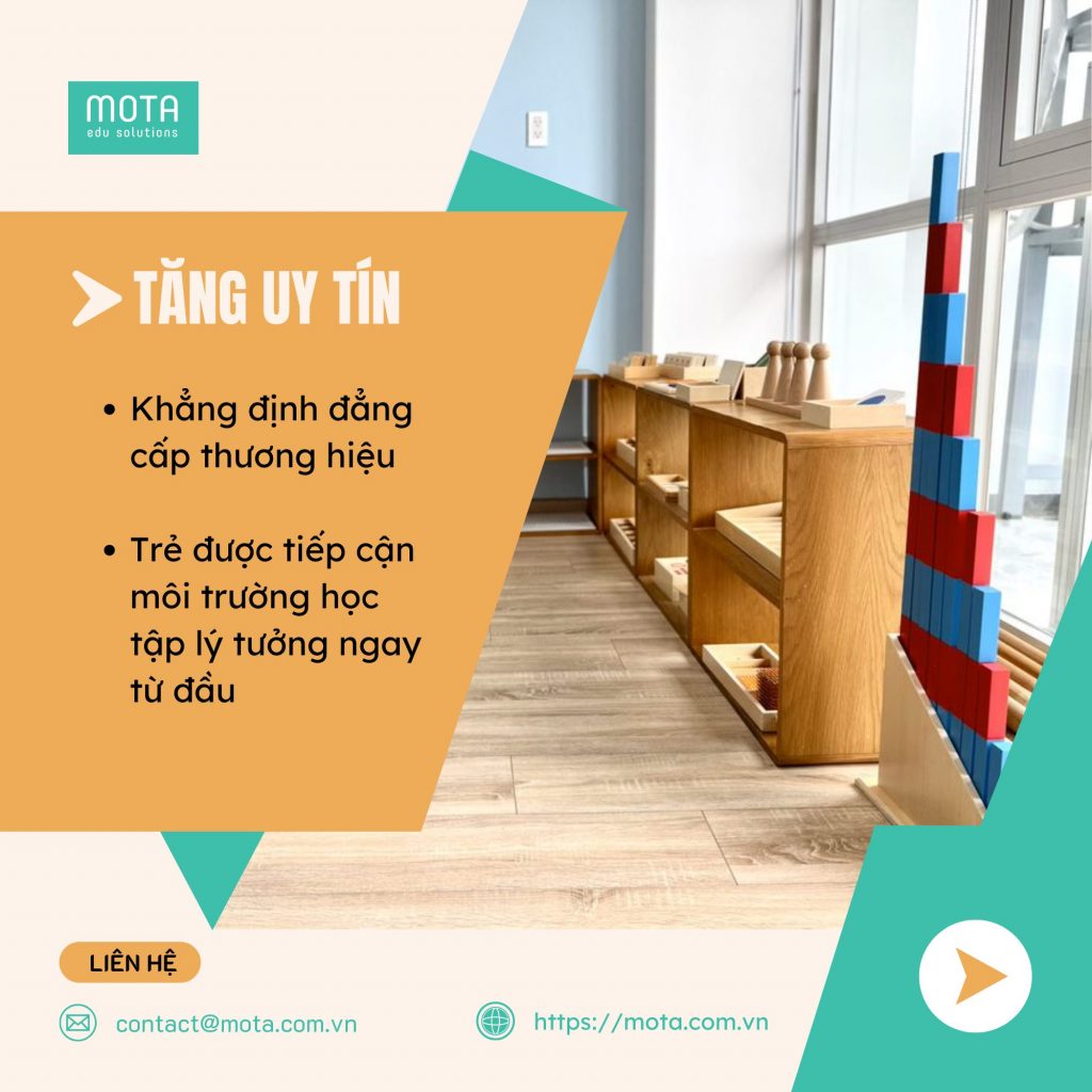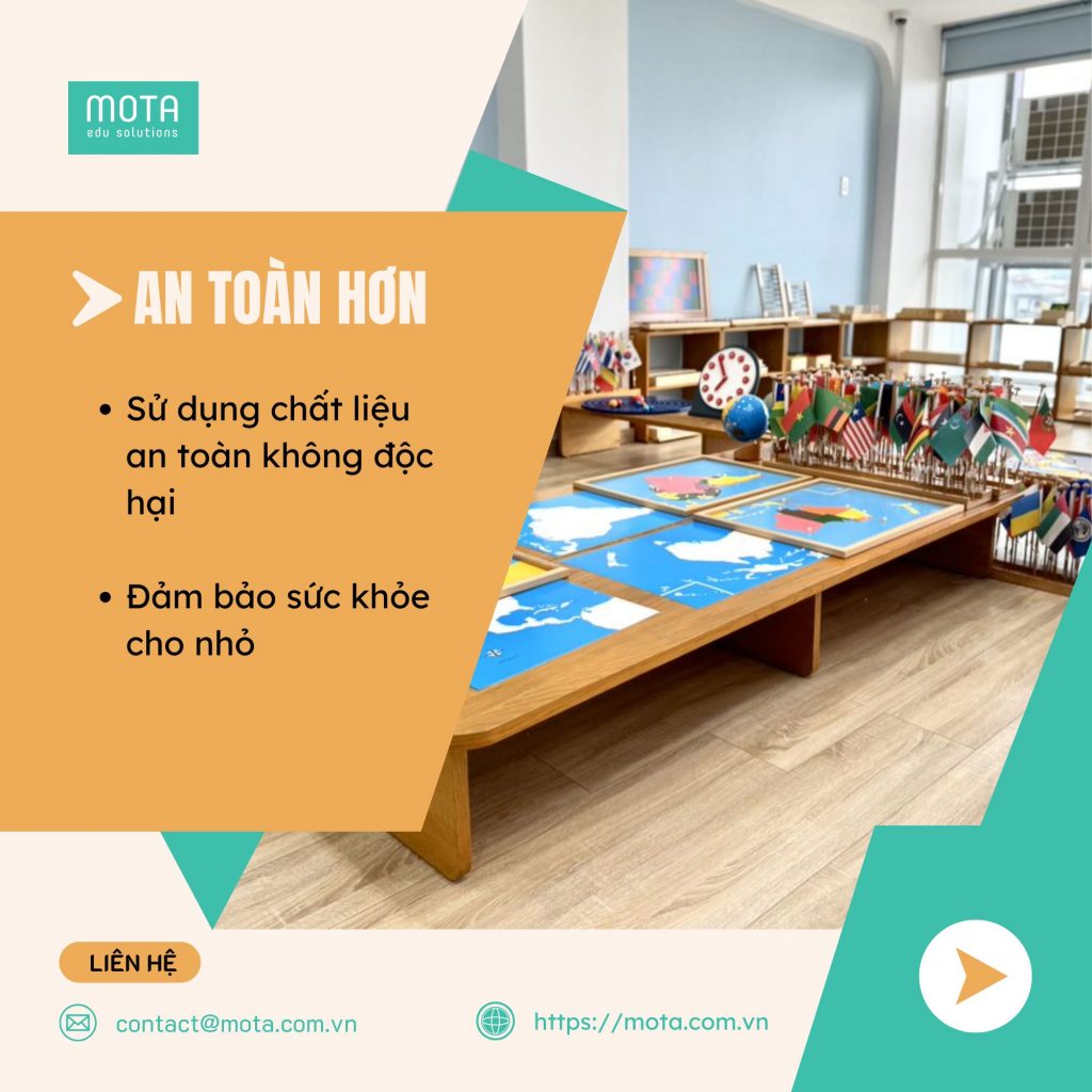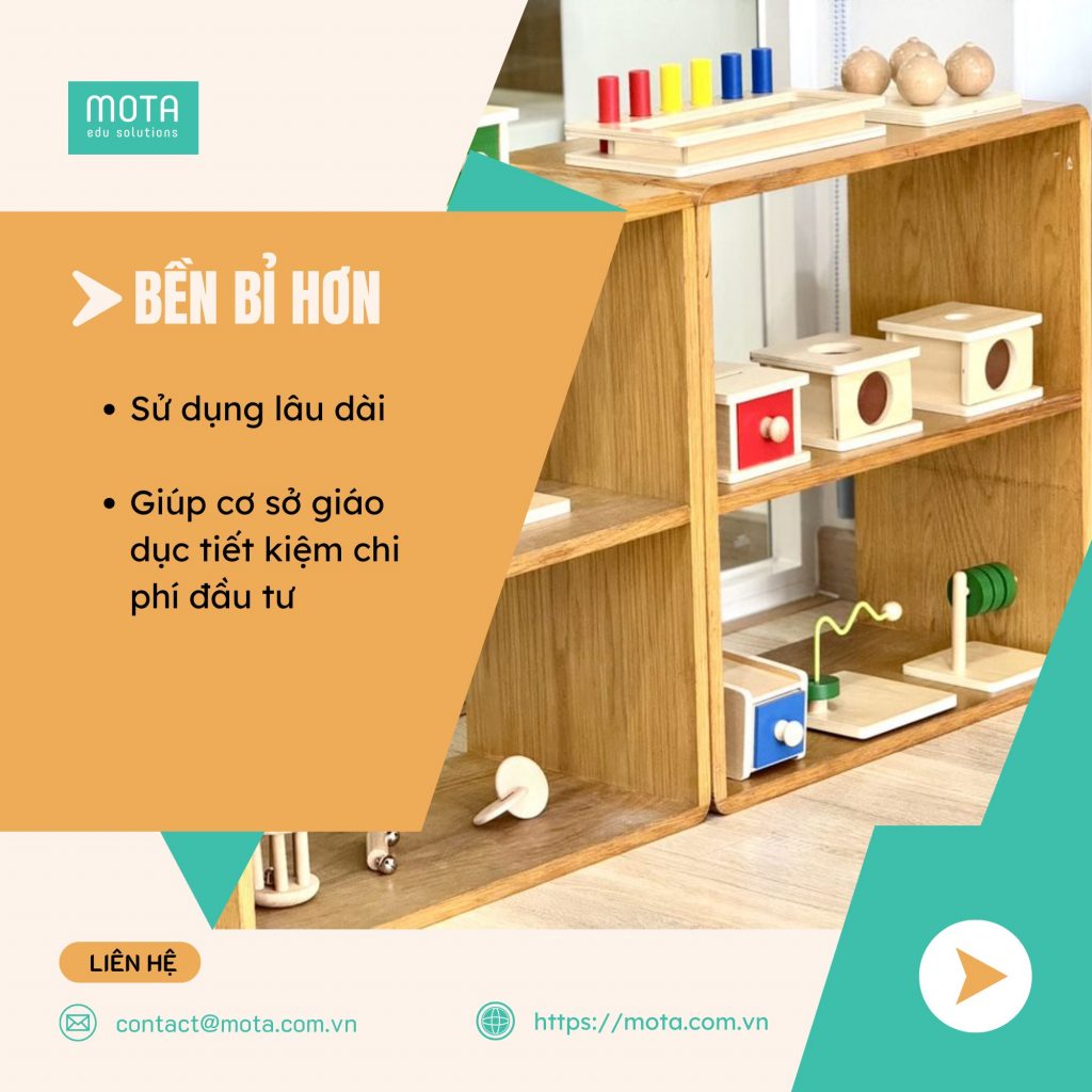 MOTA cung cấp các sản phẩm giáo cụ Montessori chất lượng cao, giúp các cơ sở giáo dục nâng cao chất lượng giảng dạy và tạo dựng uy tín.