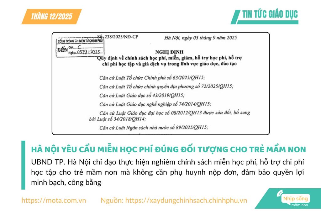 UBND TP. Hà Nội chỉ đạo thực hiện nghiêm chính sách miễn học phí, hỗ trợ chi phí học tập cho trẻ mầm non mà không cần phụ huynh nộp đơn, đảm bảo quyền lợi minh bạch, công bằng.