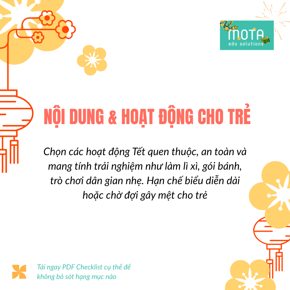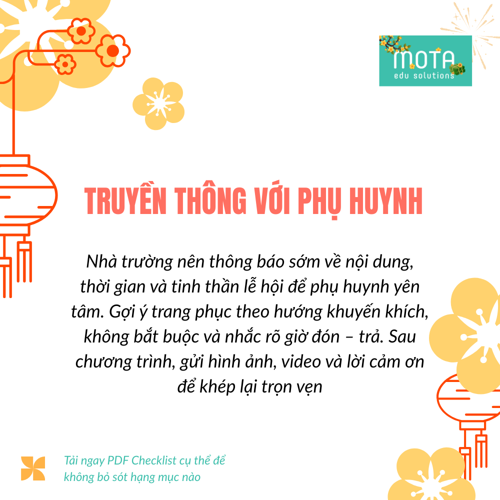 Hy vọng checklist nhỏ này giúp nhà trường nhẹ gánh chuẩn bị và thêm cảm hứng để tạo nên một mùa Tết thật đáng nhớ cho trẻ!