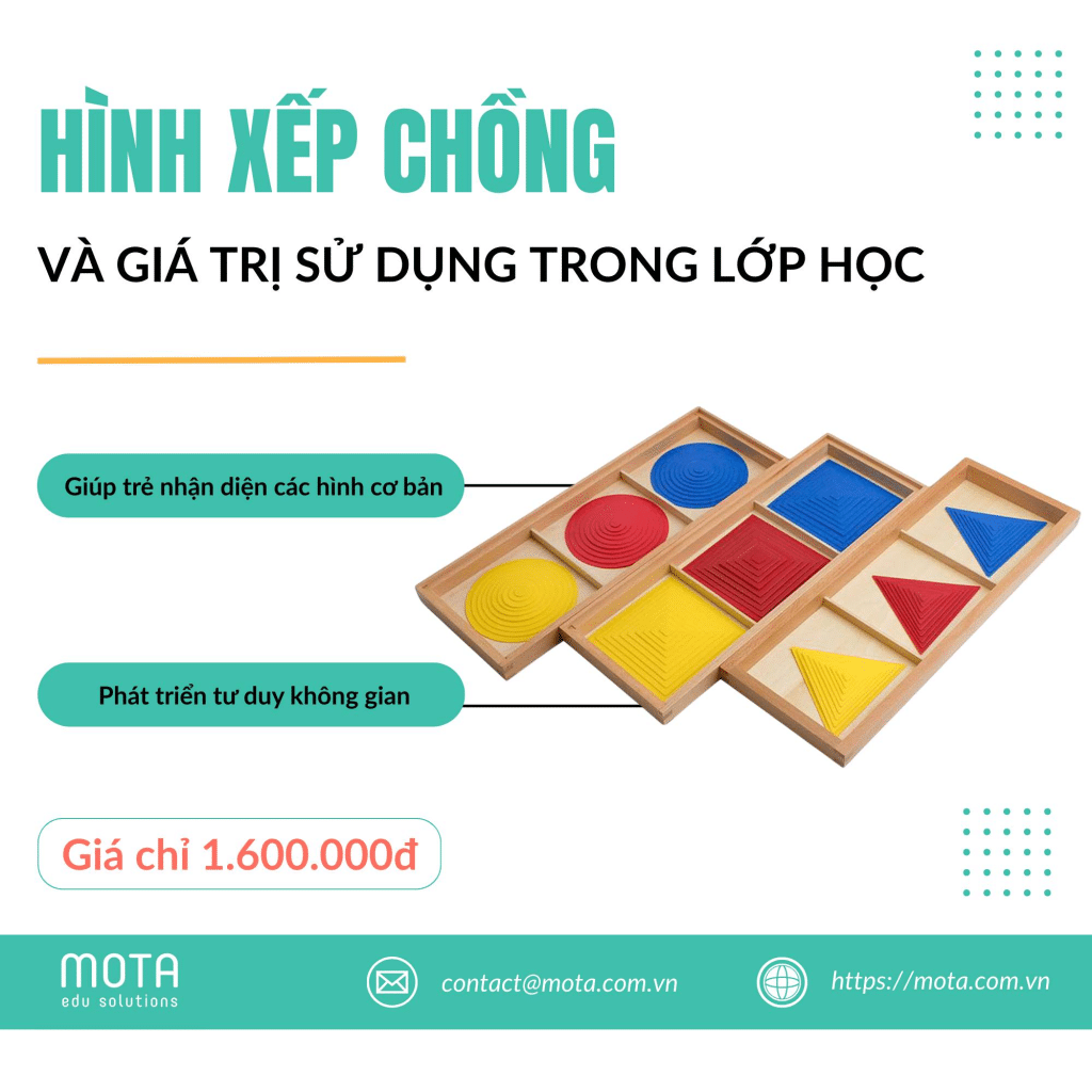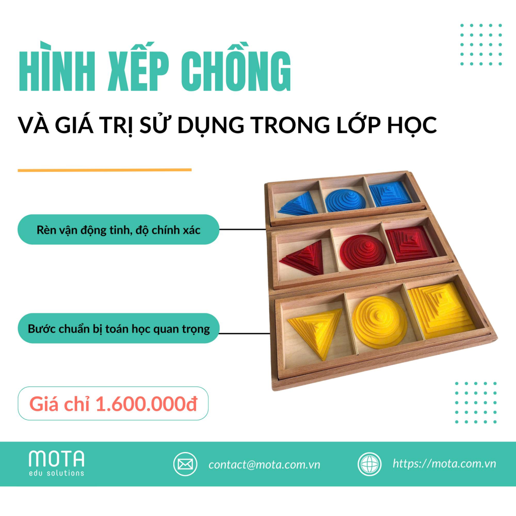 Hình xếp chồng là giáo cụ giúp trẻ làm quen với hình dạng – kích thước – trật tự thông qua thao tác tay trực tiếp.