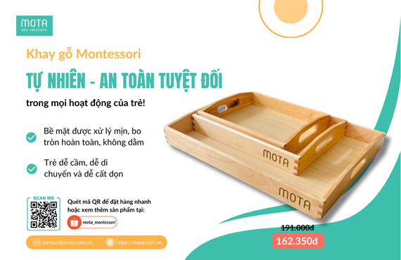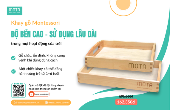Khay gỗ tưởng nhỏ nhưng lại là một trong những học cụ quan trọng nhất trong môi trường Montessori. Nhờ chiếc khay này, trẻ biết cách tổ chức hoạt động, kiểm soát không gian của mình và thực hành thao tác một cách trật tự – đúng tinh thần Montessori.
