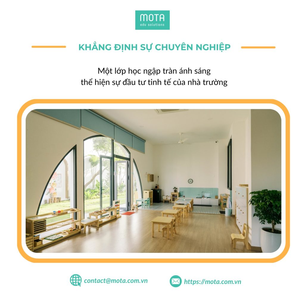 Một lớp học ngập tràn ánh sáng thể hiện sự đầu tư tinh tế của nhà trường, tạo dấu ấn trong mắt phụ huynh khi chọn trường cho con.