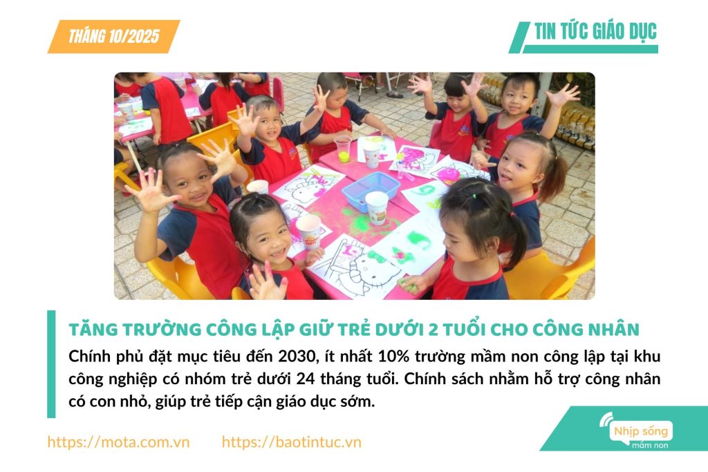 ✔️ Tăng trường công lập giữ trẻ dưới 2 tuổi cho công nhân
