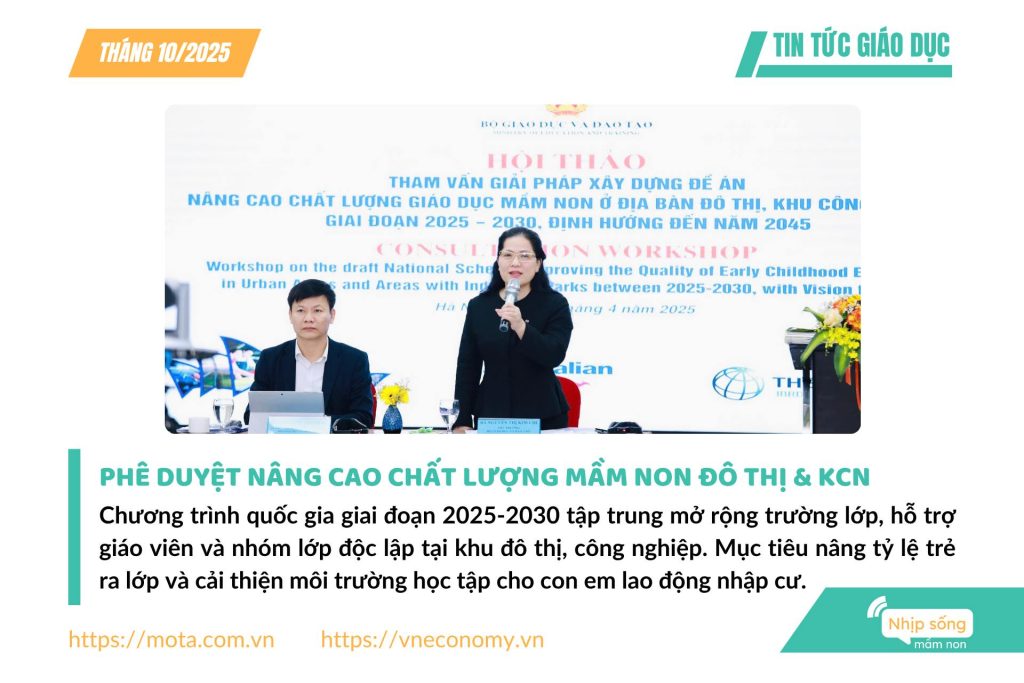✔️ Phê duyệt chương trình nâng cao chất lượng mầm non đô thị & KCN