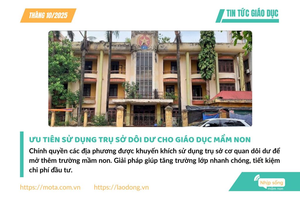 ✔️ Ưu tiên sử dụng trụ sở cơ quan nhà nước dôi dư cho giáo dục mầm non