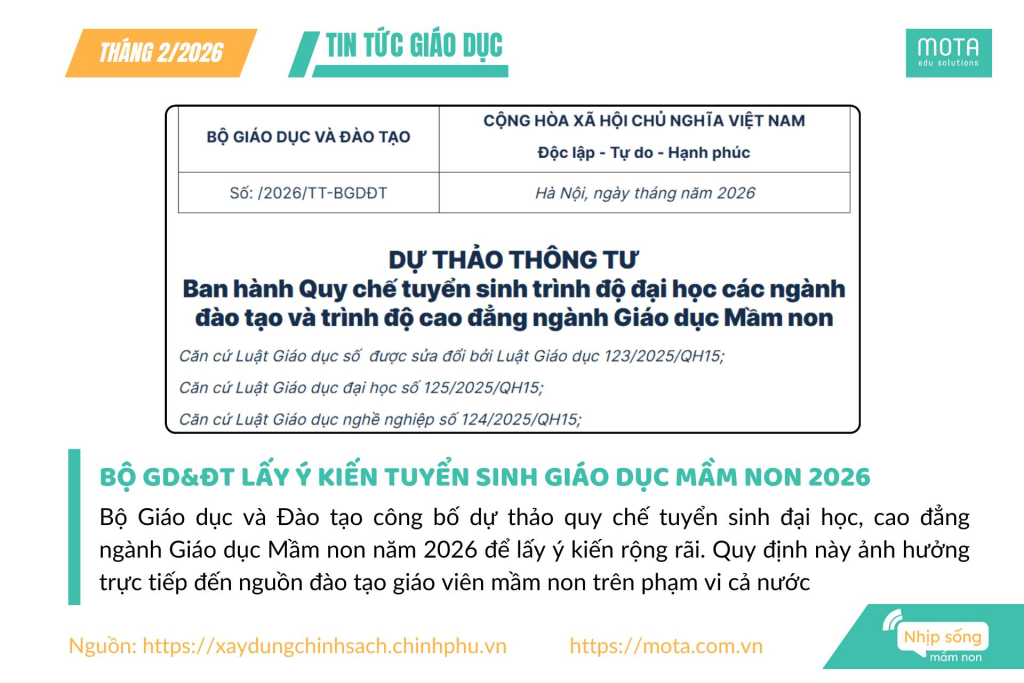 MOTA luôn cập nhật những thông tin ngành mới nhất, đồng hành cùng các trường chuẩn giáo dục mầm non 2026.