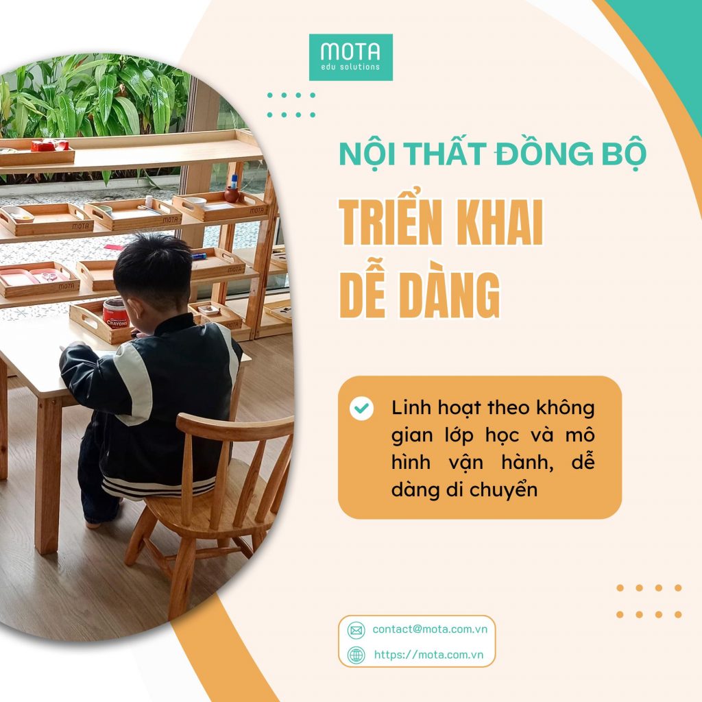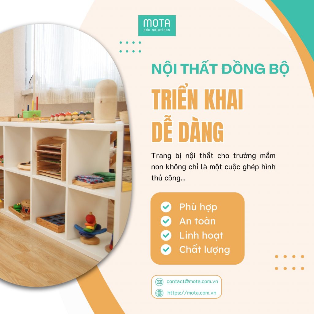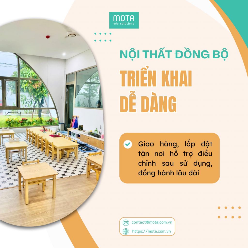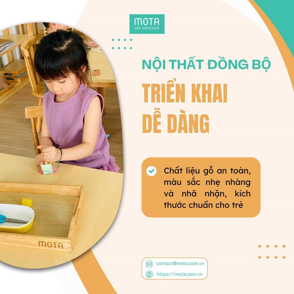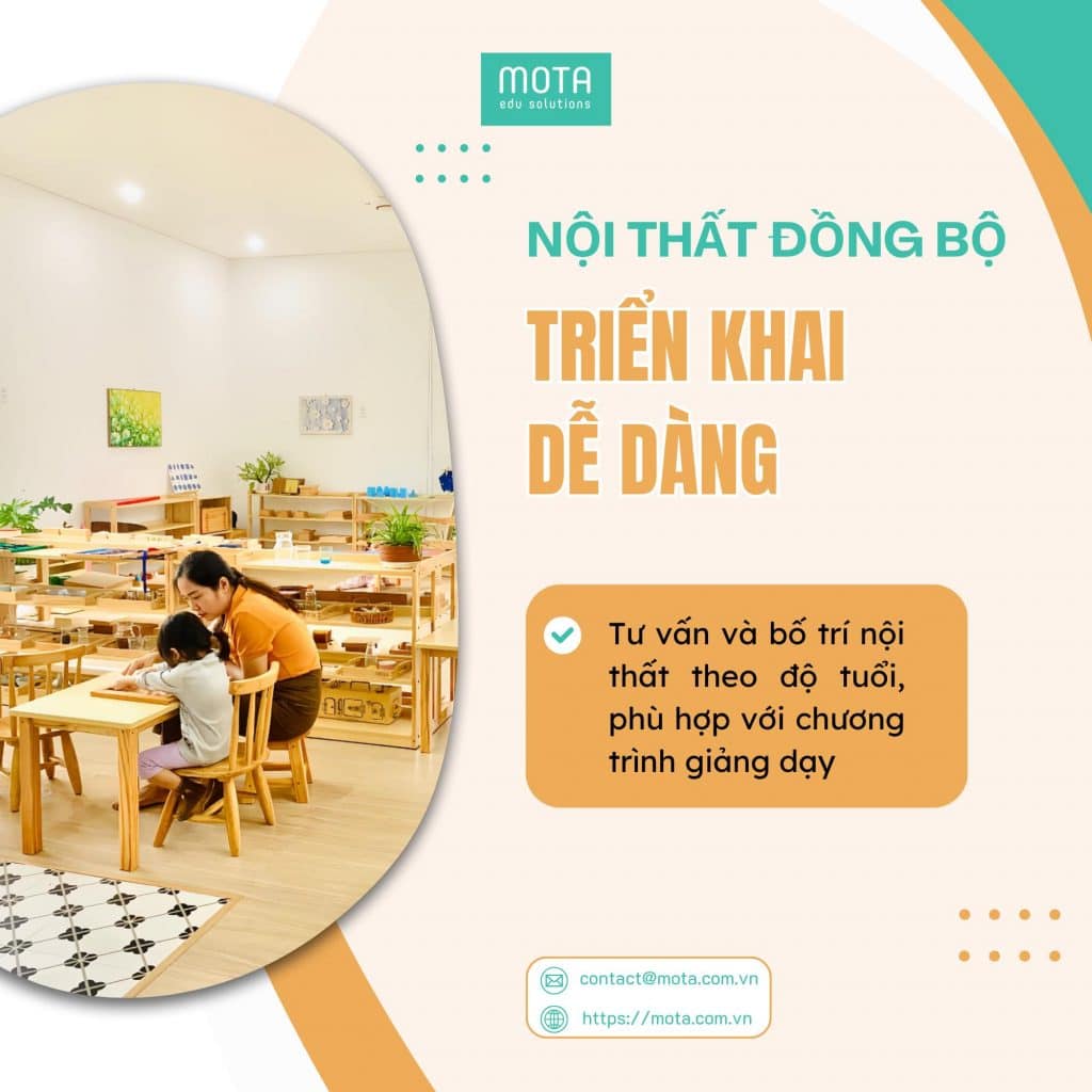MOTA Edu Solutions mang đến một dịch vụ chuyên sâu – dễ triển khai, giúp các đơn vị giáo dục có không gian sử dụng hiệu quả, đồng bộ và phù hợp với trẻ.