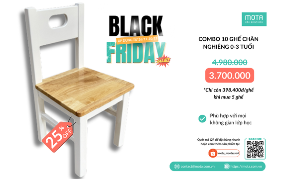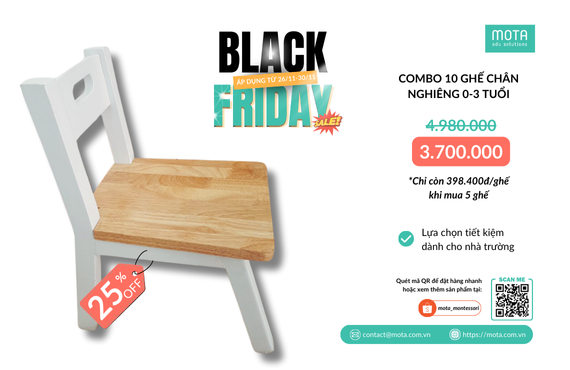 Black Friday đã chính thức khởi động và MOTA Edu Solutions sẽ mang đến ưu đãi khủng nhất năm với combo ghế mầm non Montessori🛍️