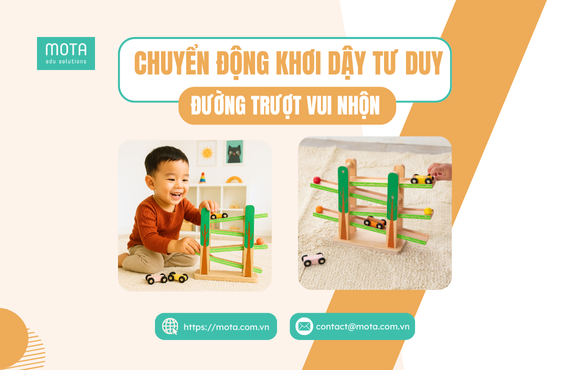 Những chiếc xe nhỏ lao vun vút ở đường trượt vui nhộn - chuyển động khơi dậy tư duy , lên rồi xuống, trái rồi phải…Trẻ cứ thế dõi theo, tập trung cao độ và học được nhiều hơn ba mẹ nghĩ.