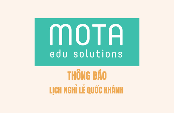 Đọc tiếp Thông báo lịch nghỉ Lễ Quốc Khánh 2-9Tháng Tám 23, 2025in Tin tức & Sự kiện Kính gửi Quý khách hàng và Quý đối tác, MOTA Edu Solutions xin trân trọng thông báo lịch nghỉ lễ Quốc Khánh 2/9 như sau: