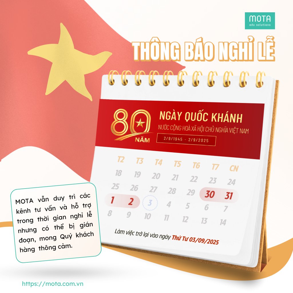 MOTA Edu Solutions xin trân trọng thông báo lịch nghỉ lễ Quốc Khánh 2/9 như sau: