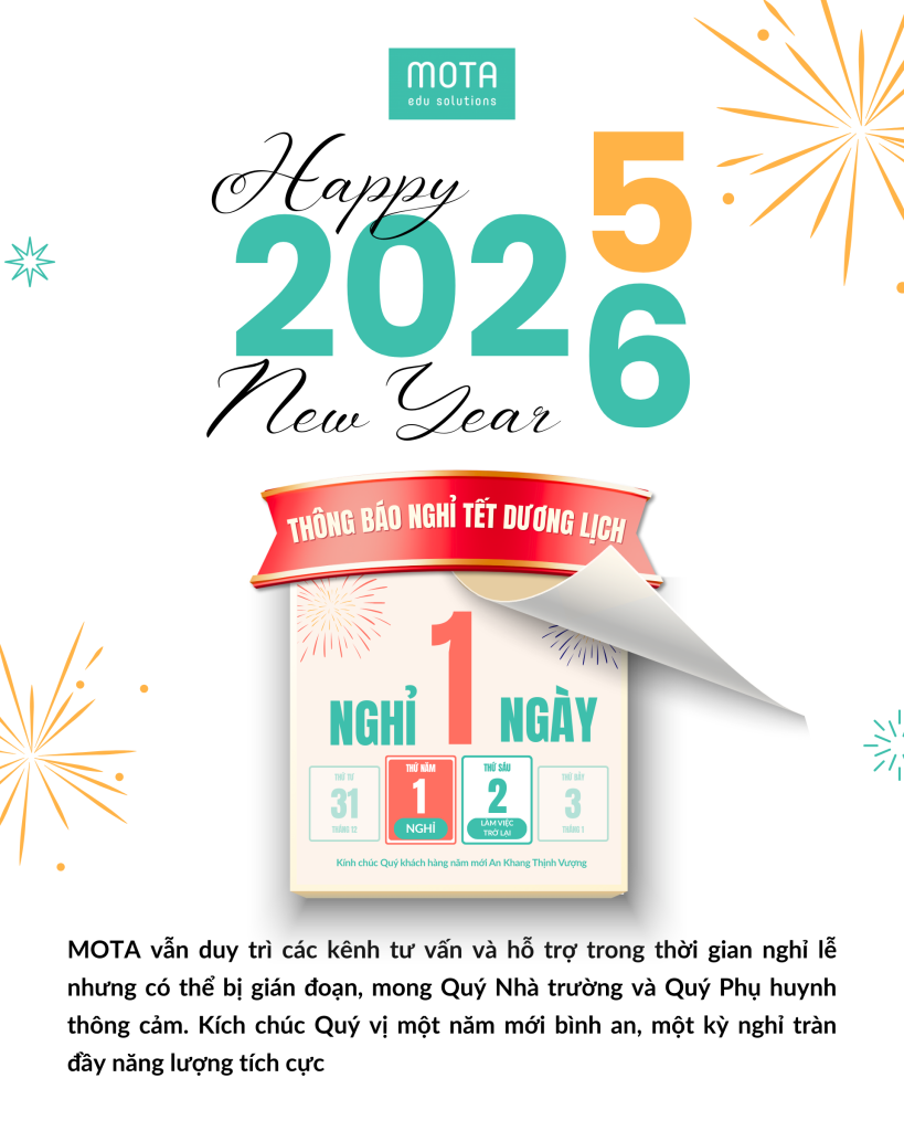 MOTA Edu Solutions xin trân trọng thông báo đến Quý Nhà trường, Quý Đối tác và Quý Thầy Cô lịch nghỉ Tết Dương lịch như sau: