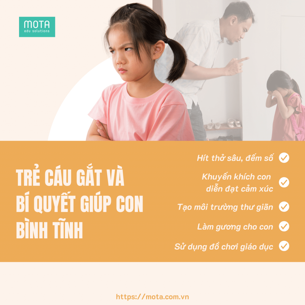 Ba mẹ có gặp tình huống con hay cáu gắt, khóc nhè không? Đây là sự phát triển bình thường của trẻ, MOTA gợi ý những cách sau để ba mẹ giúp con rèn luyện sự bình tĩnh nhé: