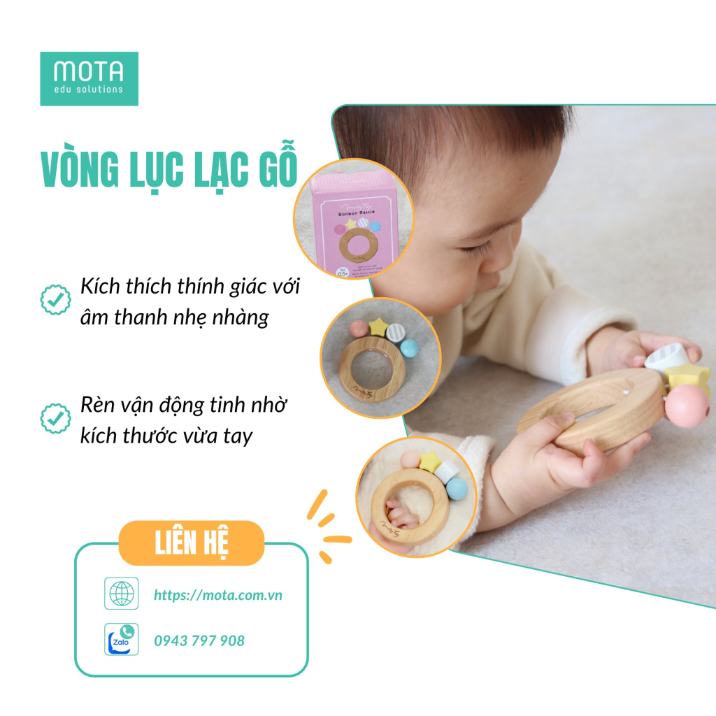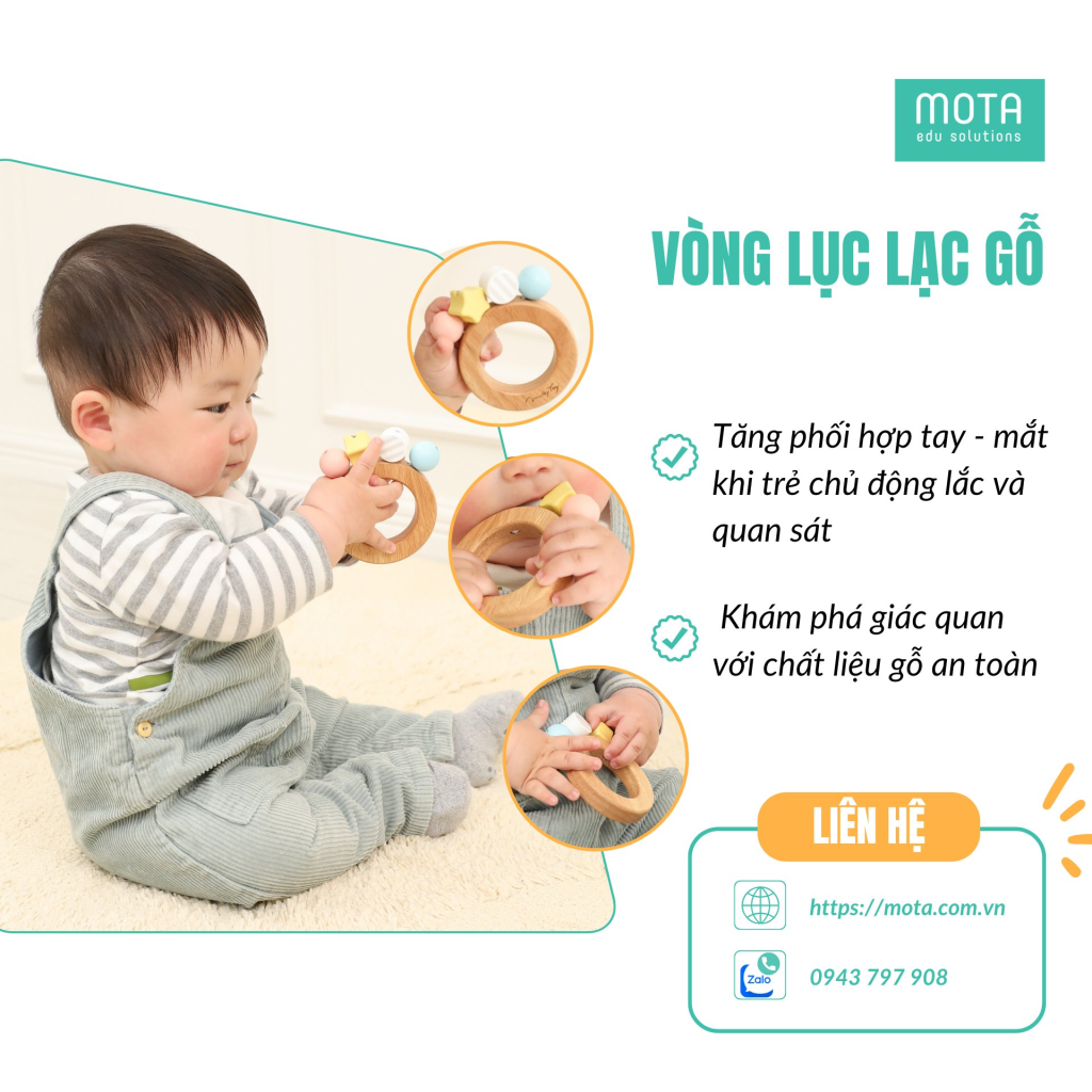 Đây thực sự là món quà đầy ý nghĩa. Một bước khởi đầu lớn cho mọi đứa trẻ. Đồ chơi phù hợp cho bé 6 đến 12 tháng. Vòng lục lạc gỗ vừa đẹp mắt lại cực kỳ bền. Sản phẩm rất an toàn cho trẻ khi ngậm cắn. Đồ chơi hỗ trợ phương pháp giáo dục sớm rất tốt. Ba mẹ hãy yên tâm chọn ngay món đồ này. Bé yêu chắc chắn sẽ vô cùng thích thú.